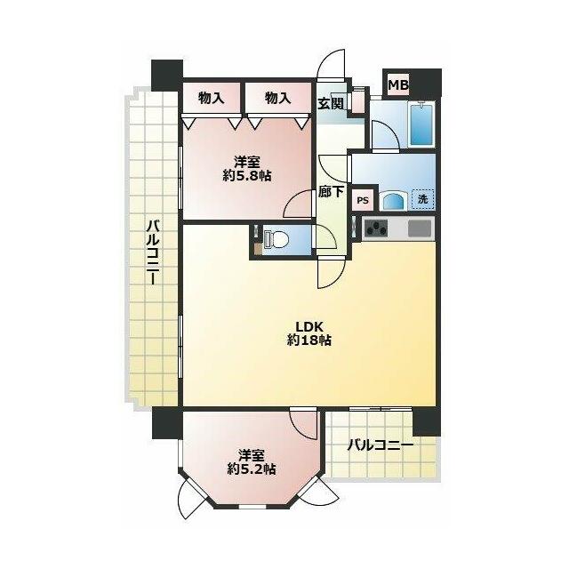 | 間取り(内訳) | 2LDK | ||