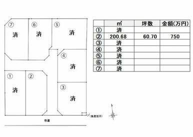 | 土地面積 | 公簿 200.68㎡ | 坪数 | 60.70坪 | 坪単価 | 12.36万円 |